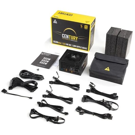 Блок питания Montech Century 850W / ATX 2.43, APFC, 80 Plus Gold, Full Bridge LLC, DC-DC, Japan caps, 120mm fan, full modular
