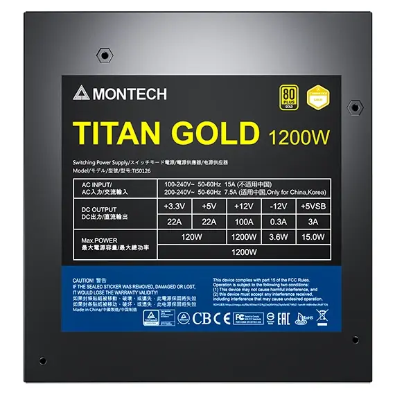 Блок питания MONTECH Titan Gold Gen.5 (TIS0126), 1200Вт, 135мм, retail