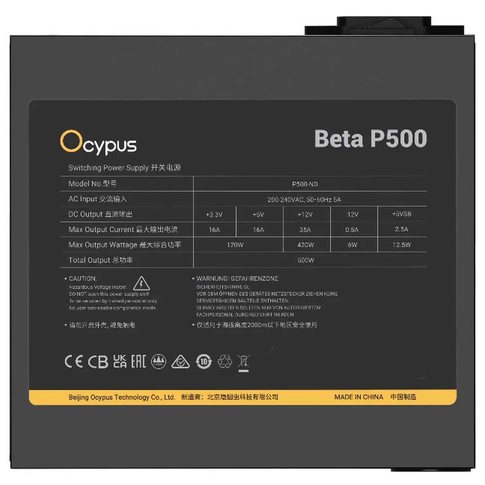 Блок питания Ocypus Beta P500 BK (Beta-P500-N1HDBK024X-EU) 500W (ATX, APFC, 20+4 pin, 120mm fan, PCI-E 6+2Px2, 3xSATA)