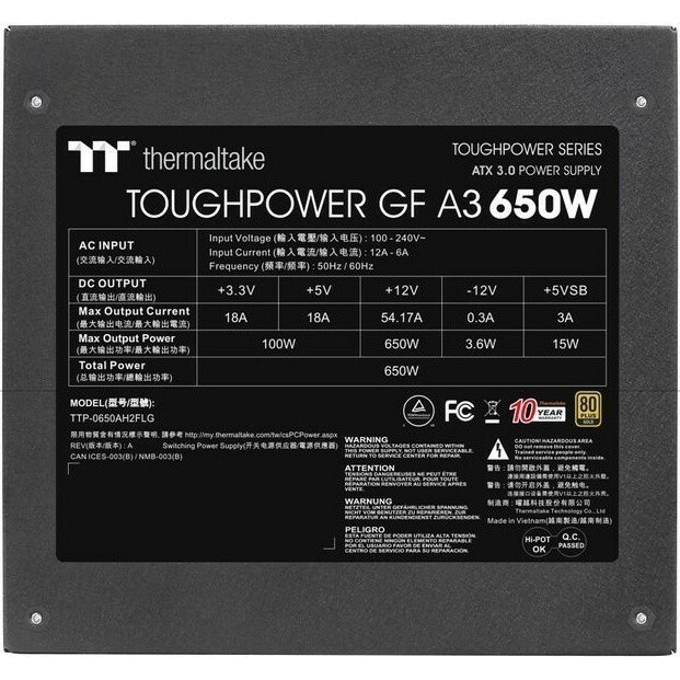 Блок питания Thermaltake Toughpower GF A3 (PS-TPD-0650FNFAGE-H) /0650W/Fully Modular/Non Light/Full Range/Analog/80 Plus Gold/EU