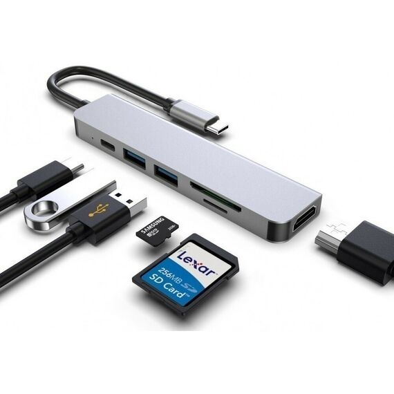 Адаптер VCOM CU4371 Type-CM - HDMI 4K*30Hz+2*USB3.0+TF+SD+PD AlumiShell (04895182246836)