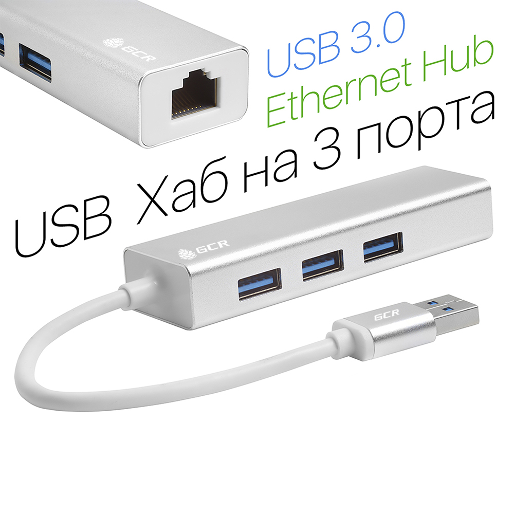 Хаб Greenconnect GCR-AP05 USB 3.0 Хаб на 3 порта+10/100Mbps Ethernet Network metall