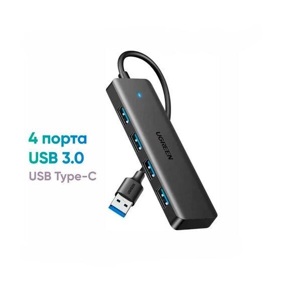 Хаб UGREEN CM219 (35574) 4-Port USB 3.0 Hub with USB-C power port 1m Black