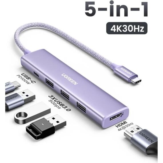 Конвертер UGREEN CM478 (35581) USB-C To HDMI 4K 31Hz+3*USB 3.0 A+PD Power Converter Blue