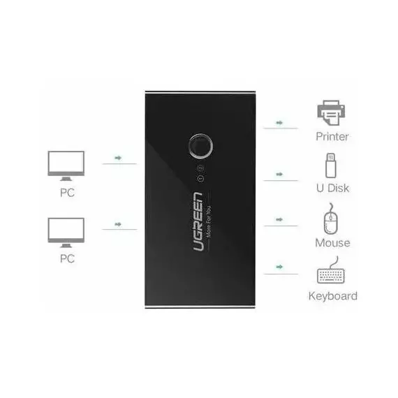Разветвитель UGREEN US216 30768 2 In 4 Out USB 3.0 Sharing Switch Box Black