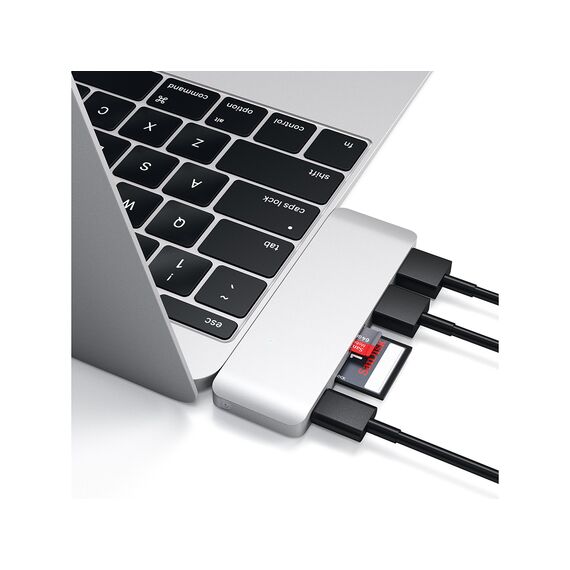 USB-хаб Satechi Type-C USB 3.0 Passthrough Hub для Macbook 12" серебряный.