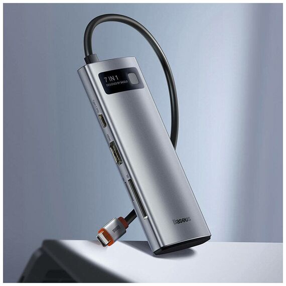USB Hub Baseus Metal Gleam (WKWG020113) 7-in-1 Multifunctional Type-C HUB Docking Station Gray (Type-C to HDMI*1+USB3.0*2+USB-C*1+PD*1+SD/TF*1)