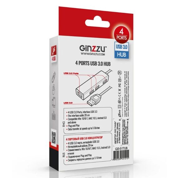 USB3.0!!! 4-х портовый USB 3.0 концентратор в алюминиевом корпусе, интерфейс USB 3.0, серебристый, индикатор питания, встроенный интерфейсный кабель - 20 см, вес/размеры: 49 г / 88 x 23 x 16,5 мм. 4-х портовый USB 3.0 концентратор в алюминиевом корпусе, интерфейс USB 3.0, индикатор питания, встроенный интерфейсный кабель - 20 см.