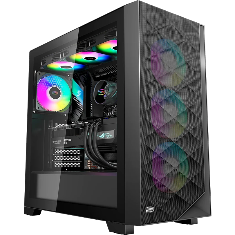Корпус PcCooler C3D510 BK ARGB без БП, Tempered Glass Full Tower, Black, TG, 0.7 SPCC, 3x120mm E-ATX, ATX, mITX 170/390/410mm 2x2.5", 7xPCI
