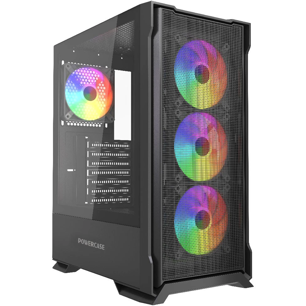 Корпус Powercase Mistral AZ4B ARGB (CMAZB-A4), Tempered Glass, 4x 120mm ARGB Fans, чёрный, ATX