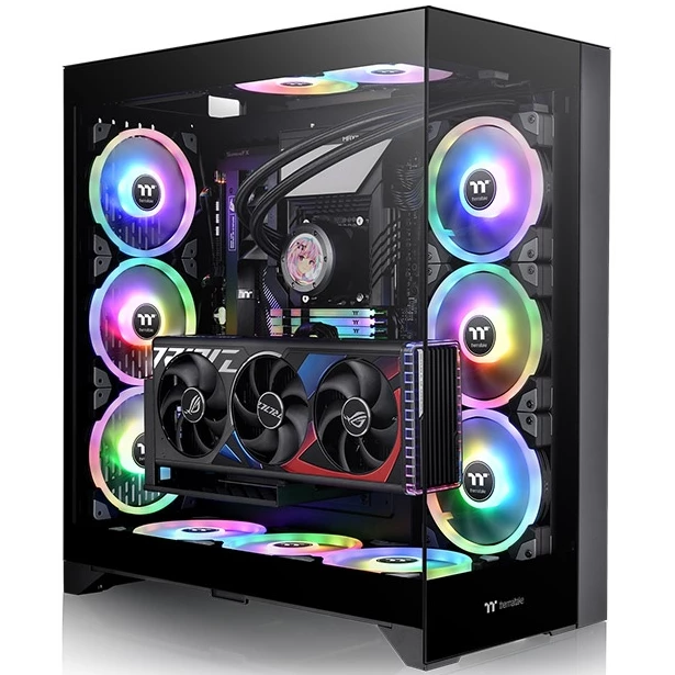 комплектуется набором для вертикальной установки видеокарты и дополнительной сменной передней панелью;
