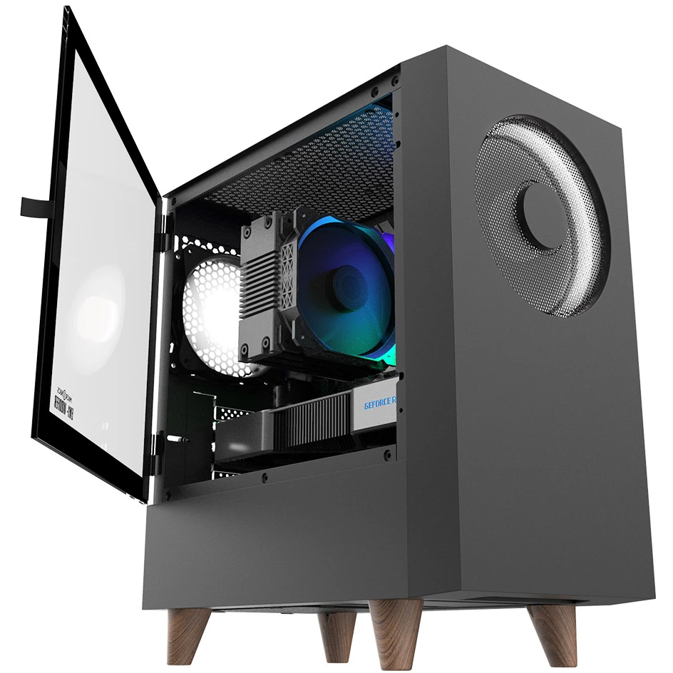 Корпус WIZMAX EM1 Woofer Black без БП M-ATX Mini-Tower, TG, 1x160mm + LED, 1xUSB-A 3.0 2.0, mATX, mITX