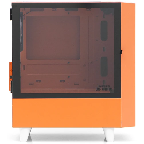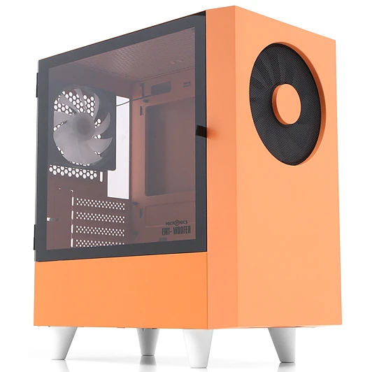 Корпус WIZMAX EM1 Woofer Orange без БП M-ATX Mini-Tower, TG, 1x160mm + LED, 1xUSB-A 3.0 2.0, mATX, mITX
