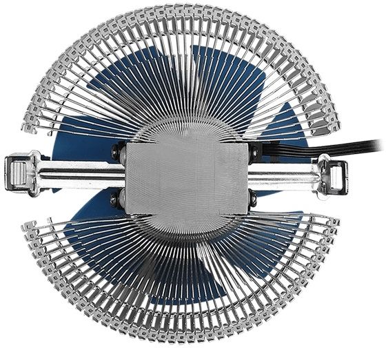 вентиляторов 1шт, 90мм, 2300 об/мин; радиатор алюминий; для ЦП до 100 Вт; основание: цельное, материал алюминий; питание от МП 3-pin; высота 55 мм