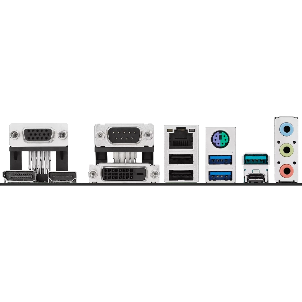 PS/2, 2 x USB 2.0, 2 x USB 3.2 Gen1, USB 3.2 Gen2, USB 3.2 Gen2 Type-C, VGA, DVI, HDMI, DisplayPort, RJ-45, COM