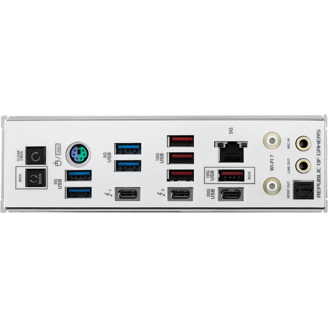 PS/2, 4 x USB 3.2 Gen1, 4 x USB 3.2 Gen2, USB 3.2 Gen2x2 Type-C, 2 x Thunderbolt 4/USB-C, RJ-45, S/PDIF (оптический)