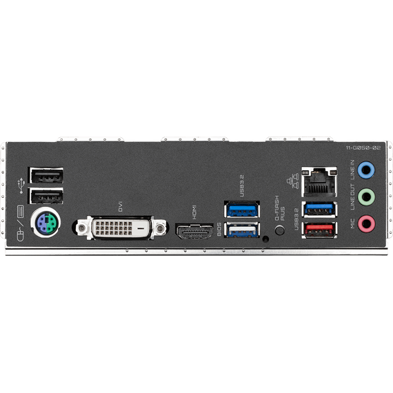 Разъёмы на задней панели : PS/2, 2 x USB 2.0, 3 x USB 3.2 Gen1, USB 3.2 Gen2, DVI, HDMI, RJ-45