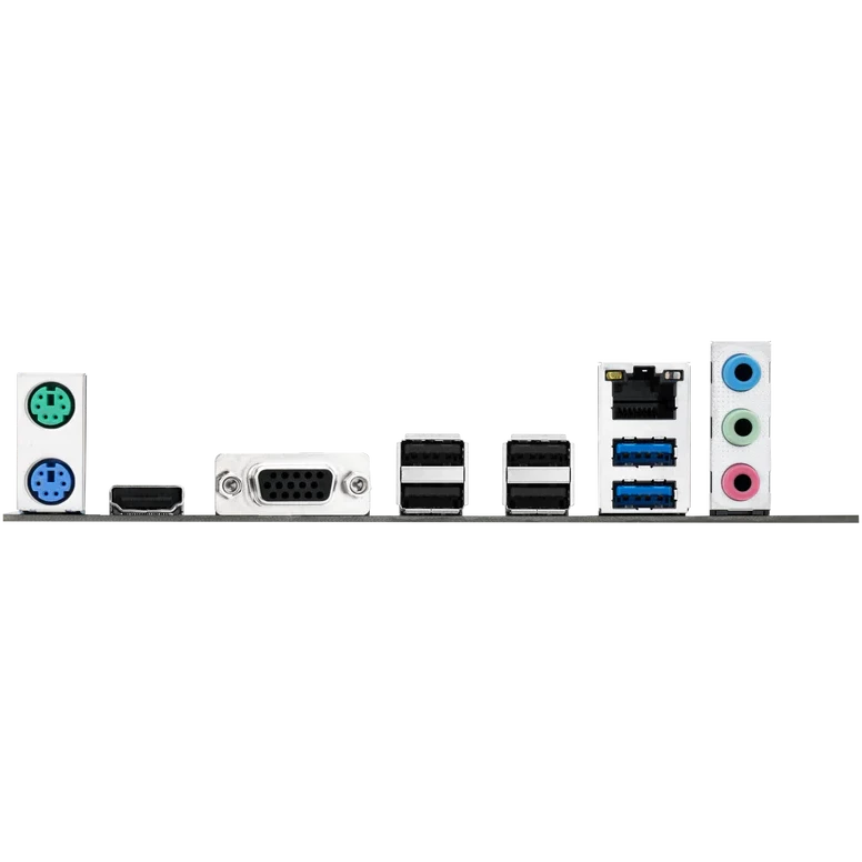 2 x PS/2, 4 x USB 2.0, 2 x USB 3.2 Gen1, VGA, HDMI, RJ-45