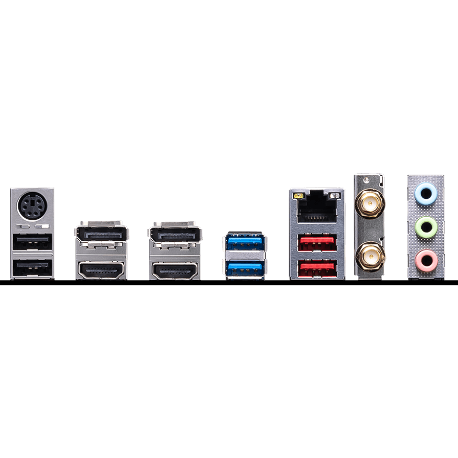 PS/2, 2 x USB 2.0, 2 x USB 3.2 Gen1, 2 x USB 3.2 Gen2, 2 x HDMI, 2 x DisplayPort, RJ-45