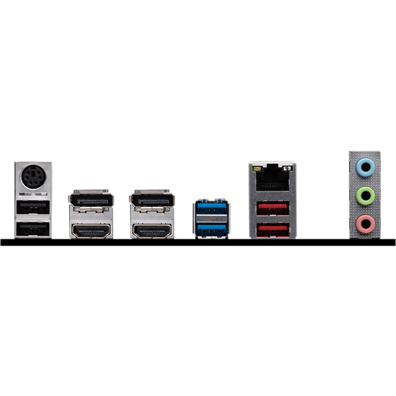 PS/2, 2 x USB 2.0, 2 x USB 3.2 Gen1, 2 x USB 3.2 Gen2, 2 x HDMI, 2 x DisplayPort