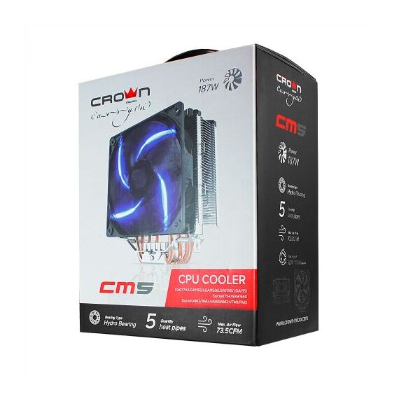 Кулер CROWN CM-5 CM000001649 Intel и AMD, TDP до 187 Вт, 5шт. теплопр. трубок