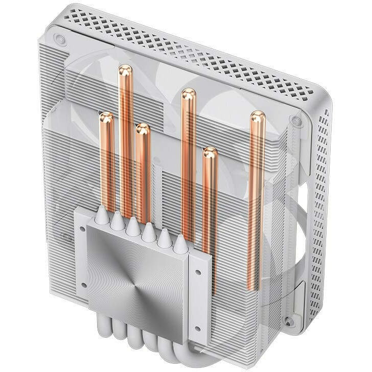 Кулер JONSBO HX6200D White низкопрофильный 63mm LGA1700/1200/115X/AM4 (18шт/кор, TDP 180W, PWM, 120mm Black Fan, 6 тепловых трубок, медная база, белый