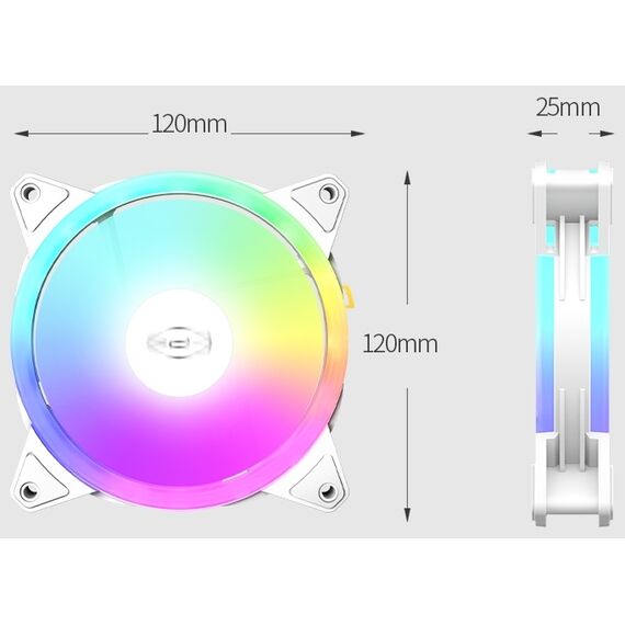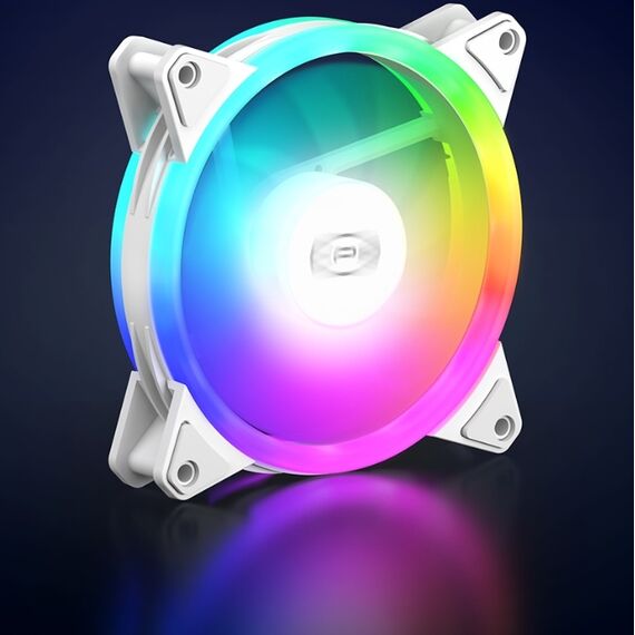 Кулер PcCooler F3 T120 ARGB WH (120x120x25mm, 4-pin PWM, 46CFM, 21.6dBA, 1800RPM, White)
