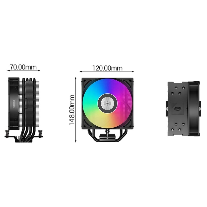 Кулер PCCooler RT400 ARGB BK S115X/1200/1700/1851/AM4/AM5 (TDP 235W, 1x120mm PWM ARGB Fan, 4 тепловые трубки 6мм, 500-2200RPM, 32dBa)