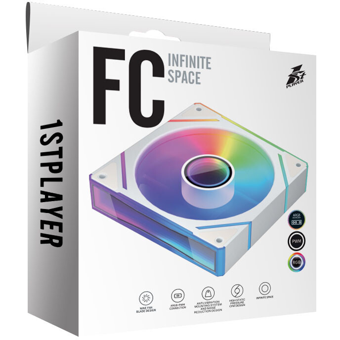 Вентилятор 1STPLAYER FC(AP)-WH-1IN1 White 120mm, ARGB, PWM, 600-1800rpm, 3pin
