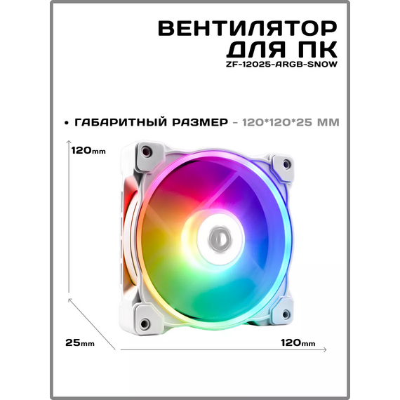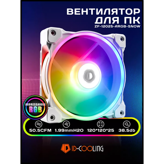 Вентилятор ID-COOLING ZF-12025-ARGB Snow 120x120x25мм PWM, Addresable RGB, 500-1600об/мин, снежно белый BOX