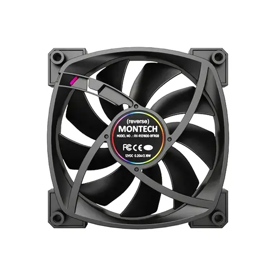 Вентилятор Montech RX120 PWM Reverse Black (RX120B) / 120mm, 4pin PWM, 3pin ARGB, 800-1600RPM, 59.0CFM, 27.0dBA, Rifle bearing