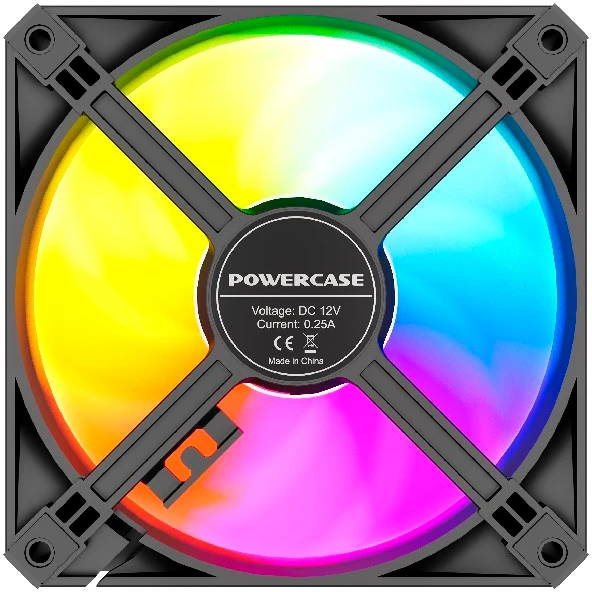 Вентилятор Powercase (M56-12 ARGB) Black 120x120x25мм (PWM, 4pin PWM (M+F)+ 3pin ARGB (M+F), 700-1500 об/мин) Bulk