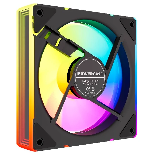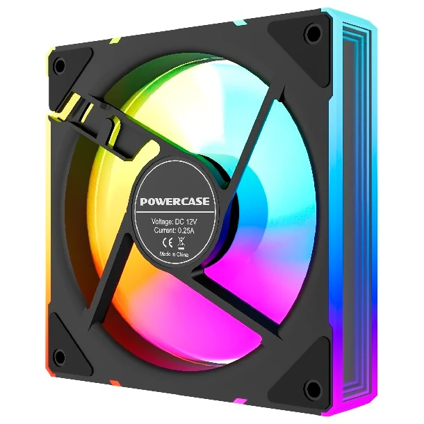 Вентилятор Powercase (M61-12 ARGB) Black 120x120x25мм (PWM, 4pin PWM (M+F)+ 3pin ARGB (M+F), 600-1500 об/мин) Bulk