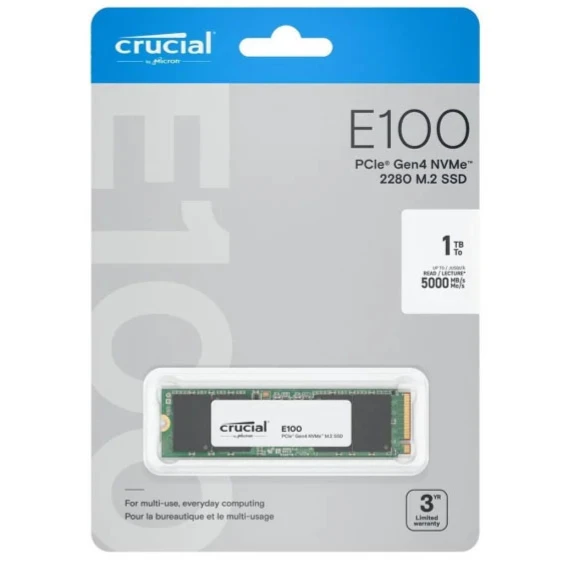 SSD Crucial E100 (CT1000E100SSD8) 1TB M.2, M.2 2280, PCI-E 4x4 (R/W - 5000/4500 MB/s)
