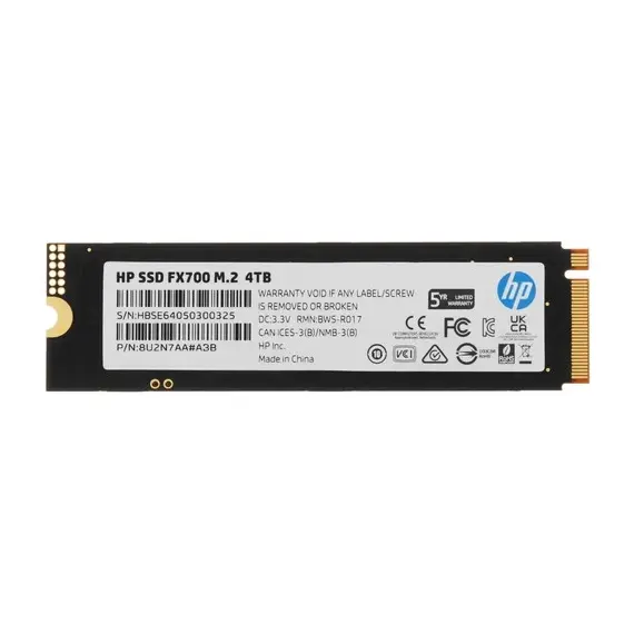 SSD HP FX700 4.0Tb (8U2N7AA#ABB) M.2 (PCI-E 4.0 x4, up to 7200/6200MBs, 3D NAND, 1600TBW, NVMe 2.0, 22х80mm, heatsink)
