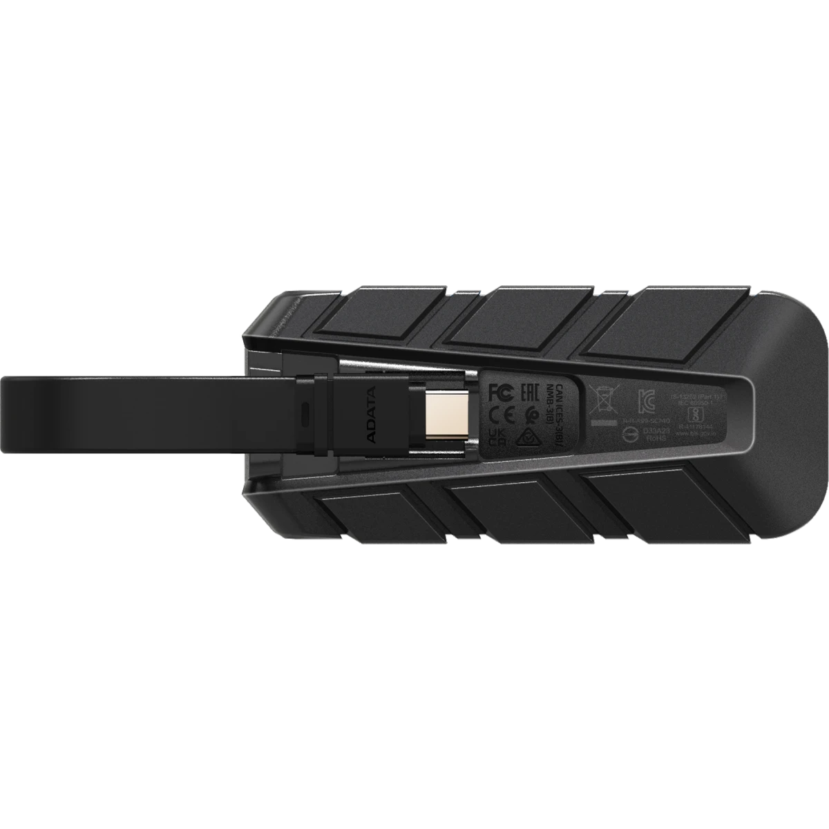 встроенный кабель USB Type-C, накопитель обладает устойчивостью к ударным нагрузкам при падении с высоты до 1.22 м (стандарт MIL-STD-810G 516.6)