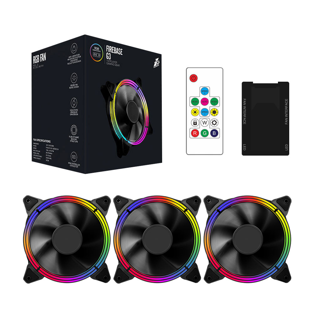 Вентилятор 1STPLAYER FIREBASE G3 /controller & remote/120mm,RGB,5-pin/G3/Комплект вентиляторов (3 шт.)