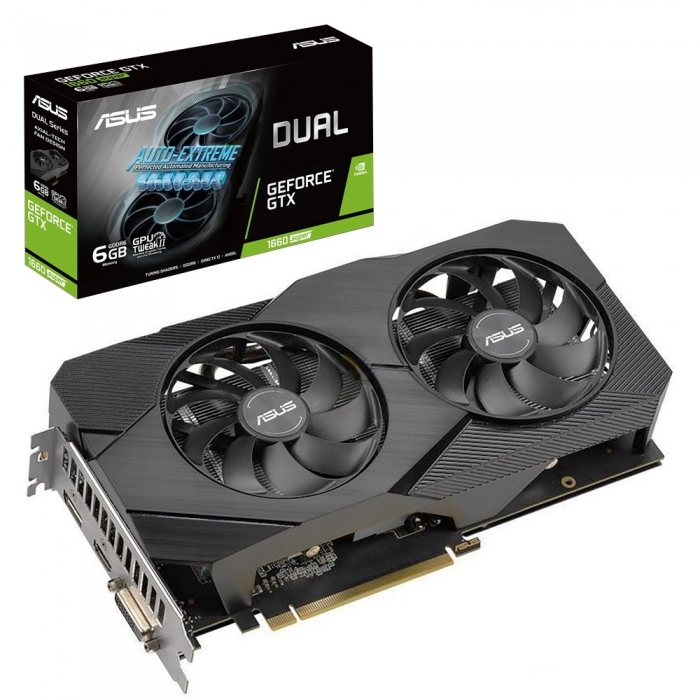 Видеокарта Asus DUAL-GTX1660S-6G-EVO PCI-E nVidia GeForce GTX 1660Super 6144Mb 192bit GDDR6 1530/14002 DVIx1/HDMIx1/DPx1/HDCP Ret