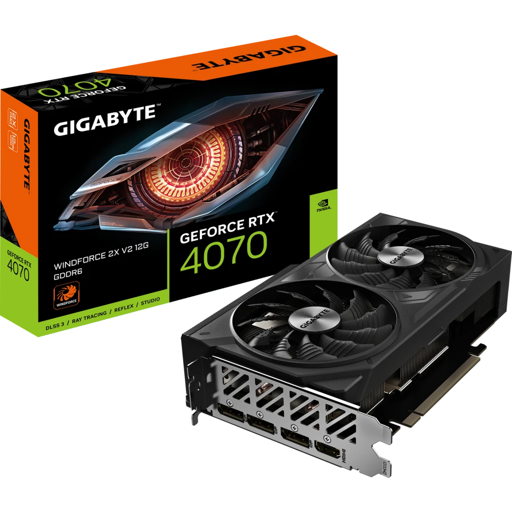 Видеокарта Gigabyte NVIDIA GeForce RTX 4070 12Gb (GV-N4070WF2V2-12GD) PCI-E 4.0 192bit GDDR6 2475/20000 HDMIx1 DPx3 HDCP Ret