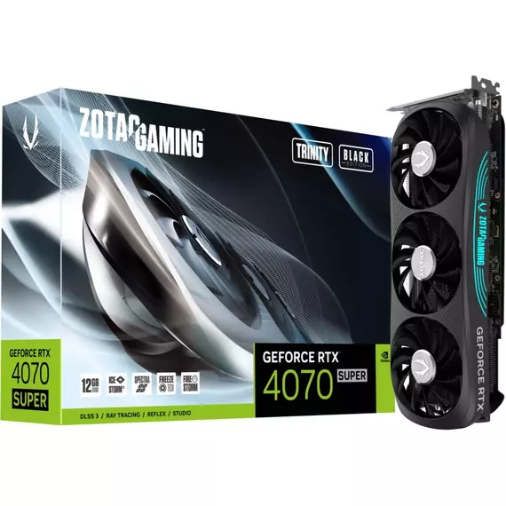 Видеокарта RTX4070 Super Trinity Black ED 12GB (ZT-D40720D-10P) GDDR6X 192bit 3xDP HDMI 3Fan Premium Pack