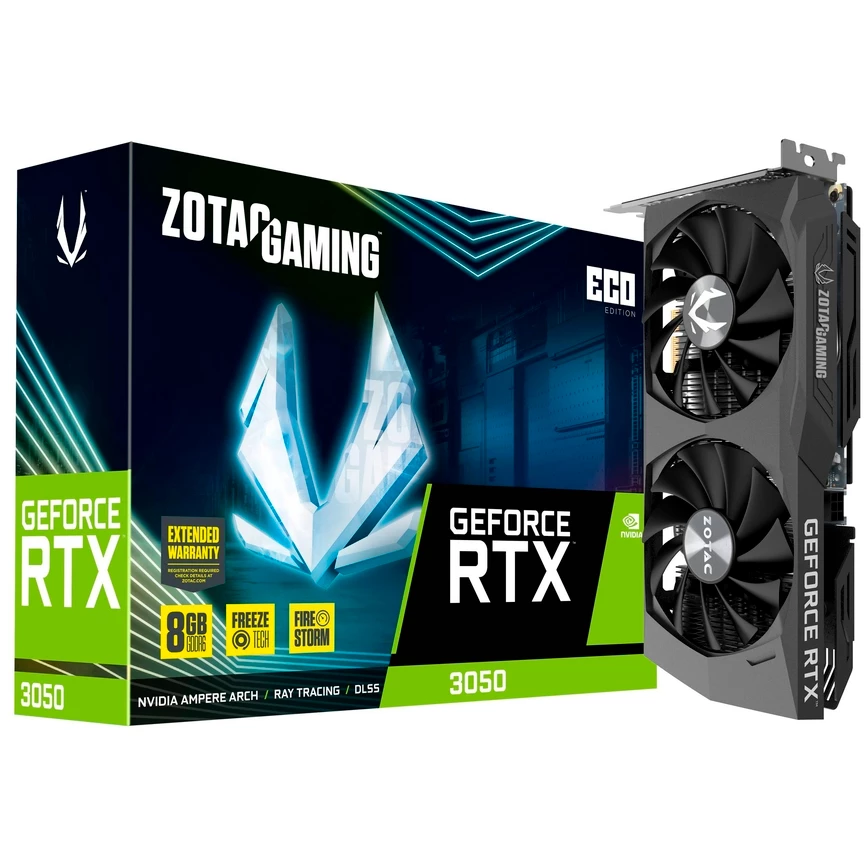 Видеокарта Zotac RTX3050 Eco 8GB (ZT-A30500K-10M) GDDR6 128bit 3xDP HDMI 2FAN Medium Pack