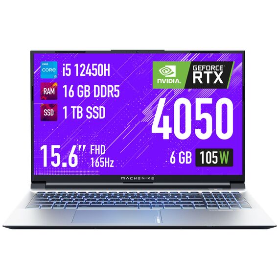 Ноутбук Machenike L15 Air Pulsar L (JJ00GH00FRU) 15.6" Intel Core i5 12450H 2.0 ГГц 8 ядер 16 ГБ DDR5 1024 ГБ SSD M.2 Nvidia Geforce RTX4050 6 ГБ DOS