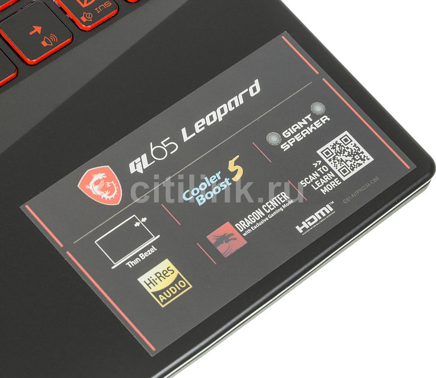 Ноутбук MSI GL65 Leopard 10SCXR-021RU 9S7-16U822-021 i7 10750H/8Gb/SSD512Gb/nVidia GF GTX 1650 4Gb/15.6"/IPS/FHD/Win10/black