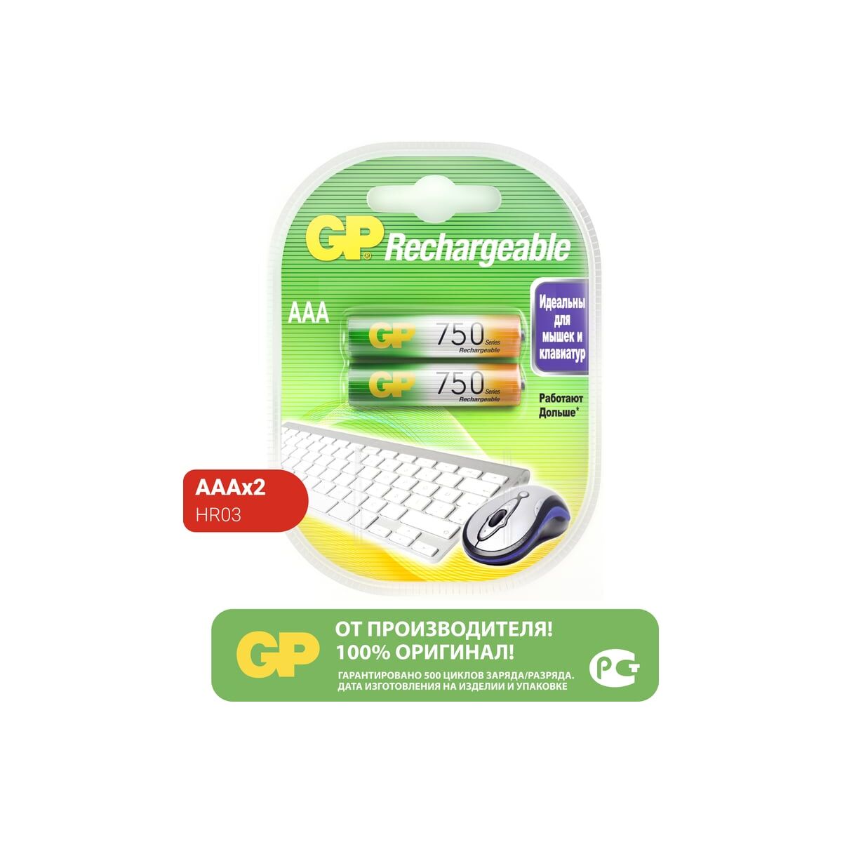 Перезаряжаемые аккумуляторы GP 75AAAHC AAA, емкость 750 мАч - 2 шт. 75AAAHC-2DECRC2 - это аккумуляторы повышенной емкости, идеально подходят для беспроводных клавиатур и мышек. Кроме того, они могут использоваться в современной цифровой технике, фонарях и светильниках, детских игрушках и других бытовых приборах, в которых требуется элемент питания типоразмера ААА.