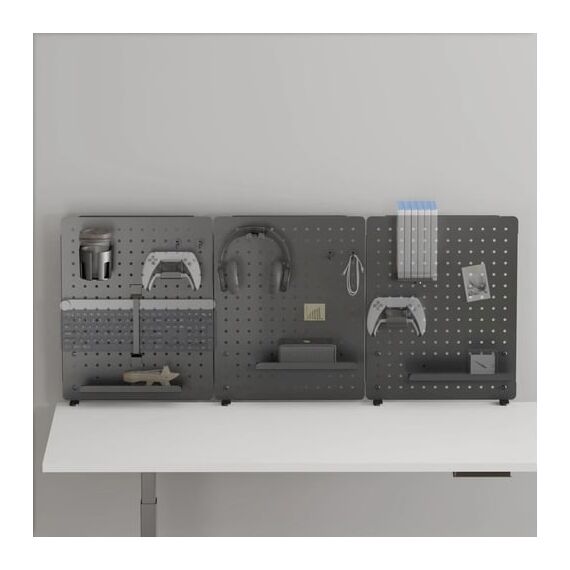 Набор аксессуаров CS-GMPB-SET1 станет отличным дополнением к перфорированным панелям Cactus. Большое количество различных крючков, удобный подстаканник, длинные полки для разных мелочей, отдельная раздвигаемая полочка для игр и универсальный крепёж для клавиатуры – всё это поможет в поддержании порядка на рабочем столе. Аксессуары легко и надёжно крепятся к панели, а стильный светло-серый цвет отлично подойдёт к любому интерьеру.