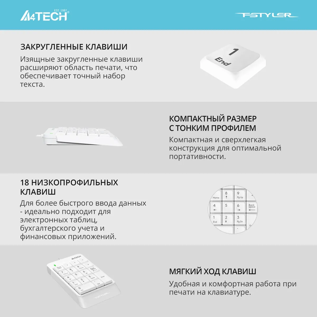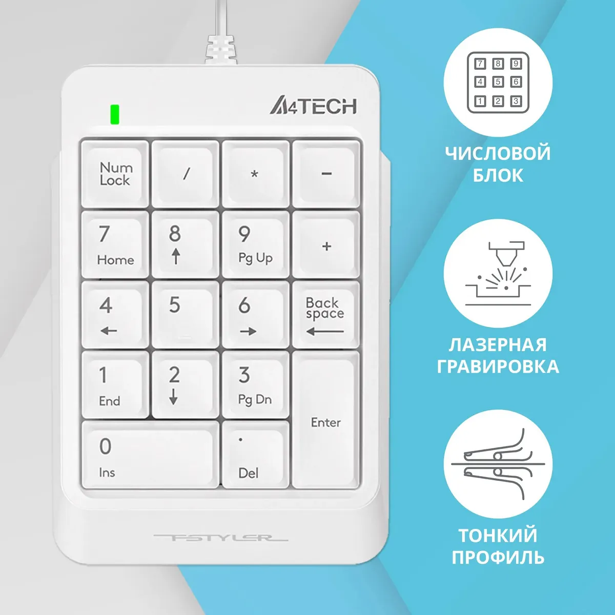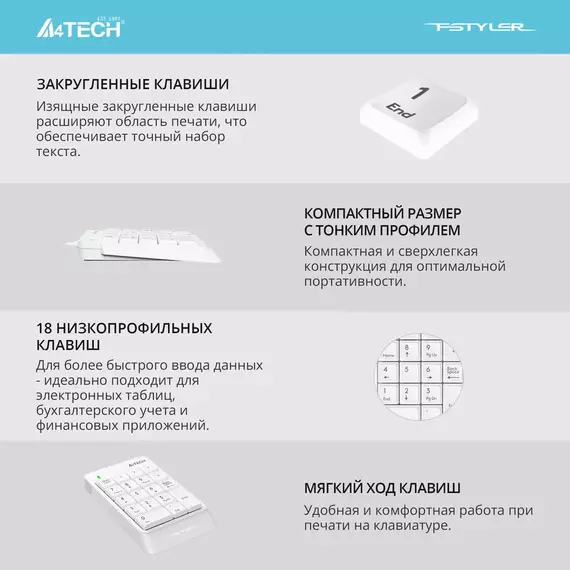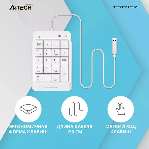 Числовой блок A4Tech Fstyler FK13P (FK13P white) белый USB slim для ноутбука