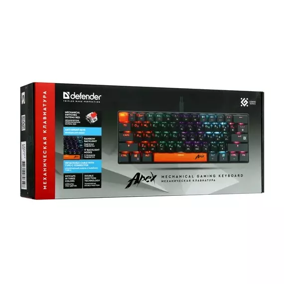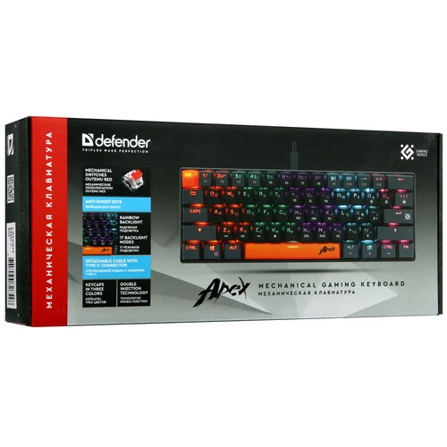 Ультракомпактная механическая клавиатура Defender Apex GK-002 с кейкапами трех цветов и тихими красными переключателями. Основные преимущества модели: регулируемая радужная подсветка, 21 клавиша, поддерживающая функцию Anti-ghost, а также повышенная износостойкость благодаря технологии Double injection.