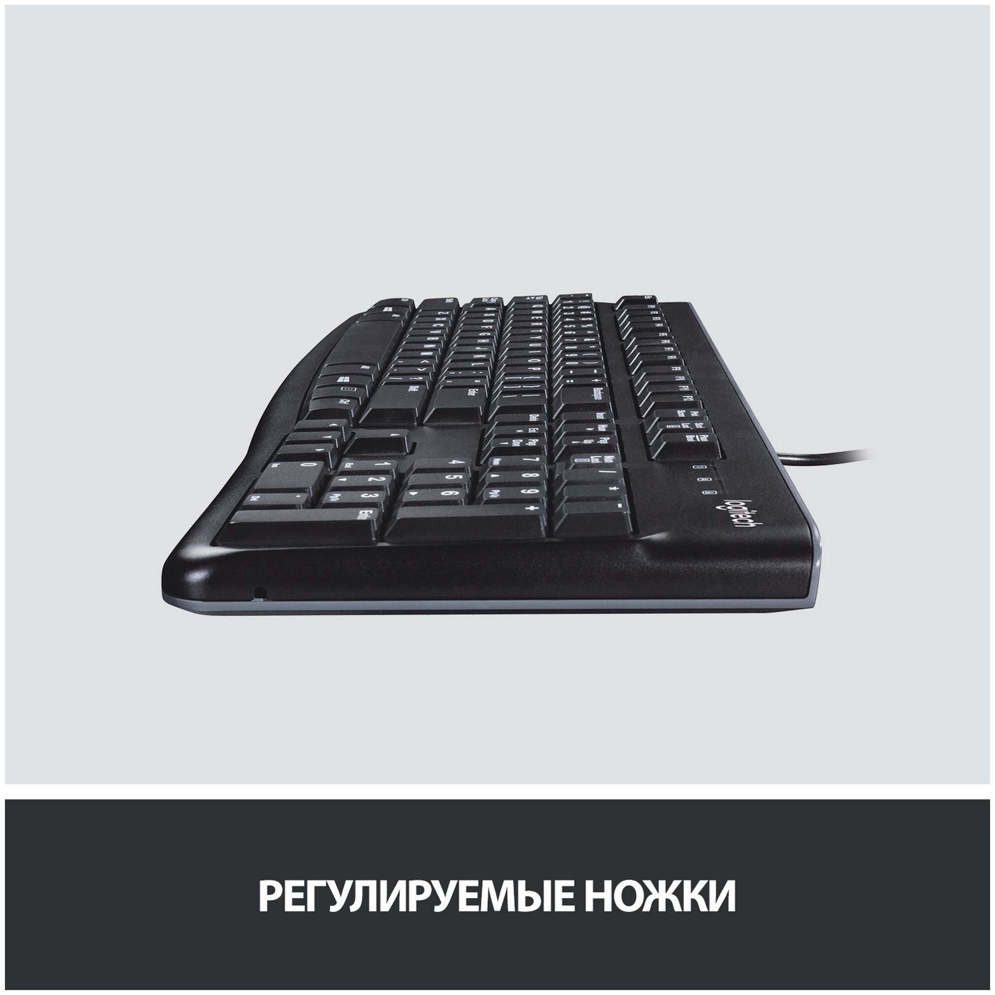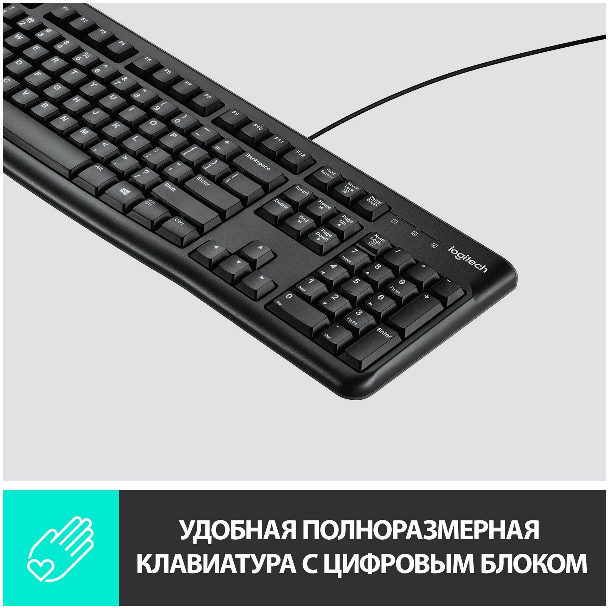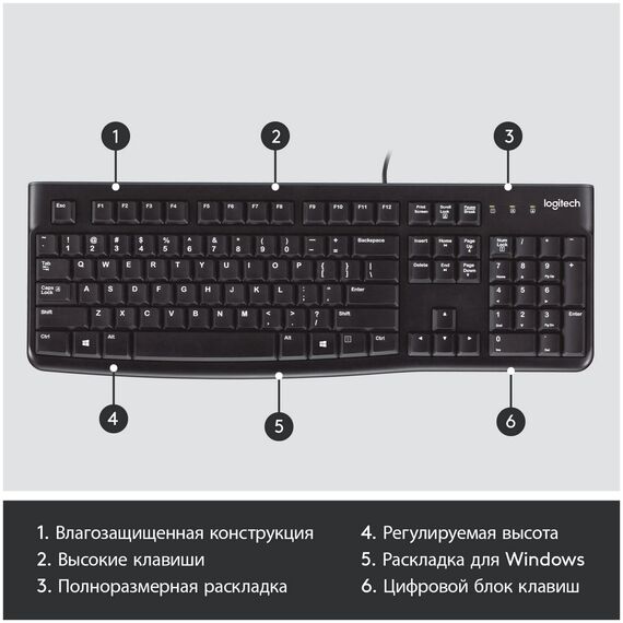 Клавиатура Logitech® K120. Эта модель гарантирует повышенное удобство при вводе текста и рассчитана на длительный срок эксплуатации. Плоские клавиши обеспечивают комфортный и бесшумный ввод текста, а стандартная раскладка с полноразмерными функциональными клавишами и цифровым блоком создают дополнительное удобство.