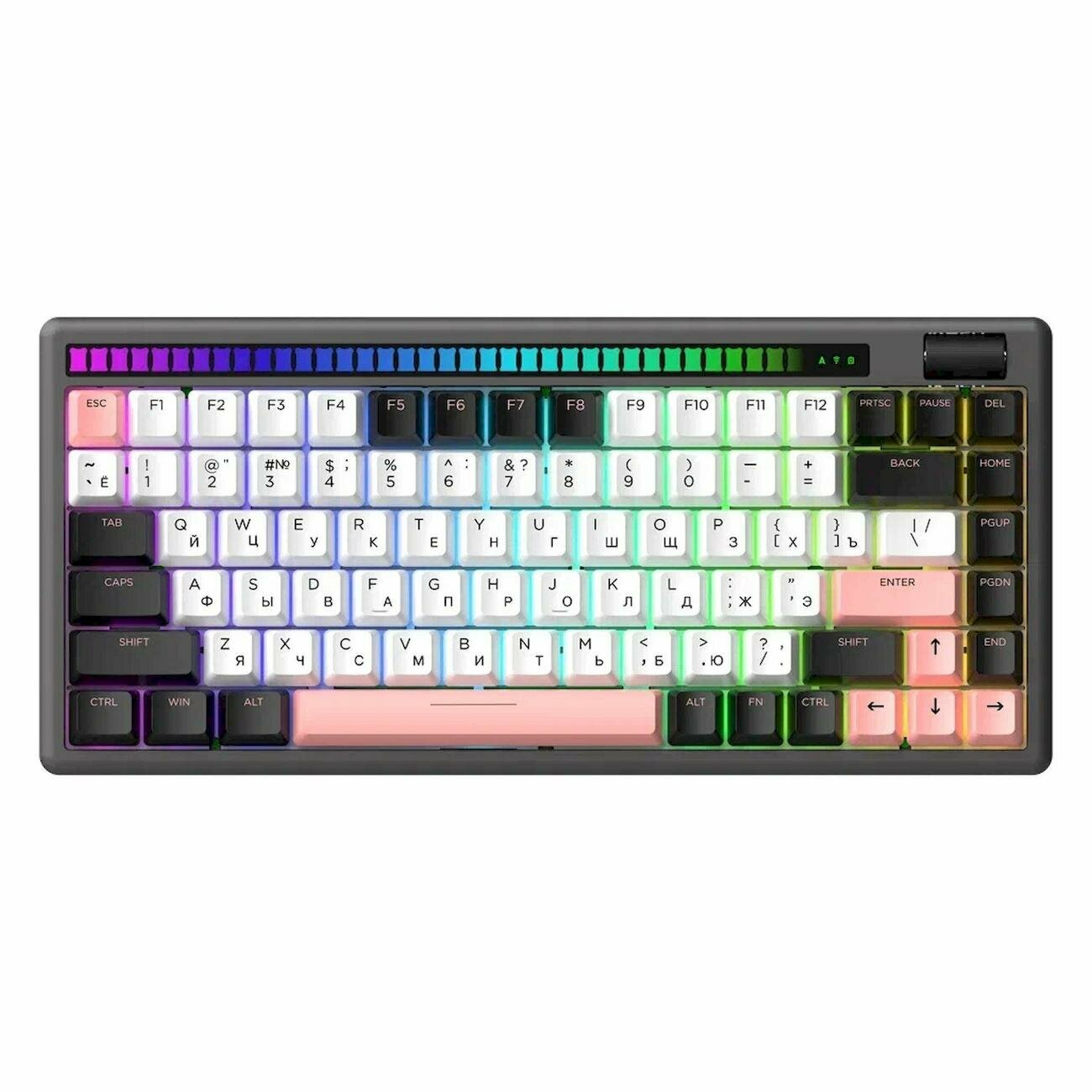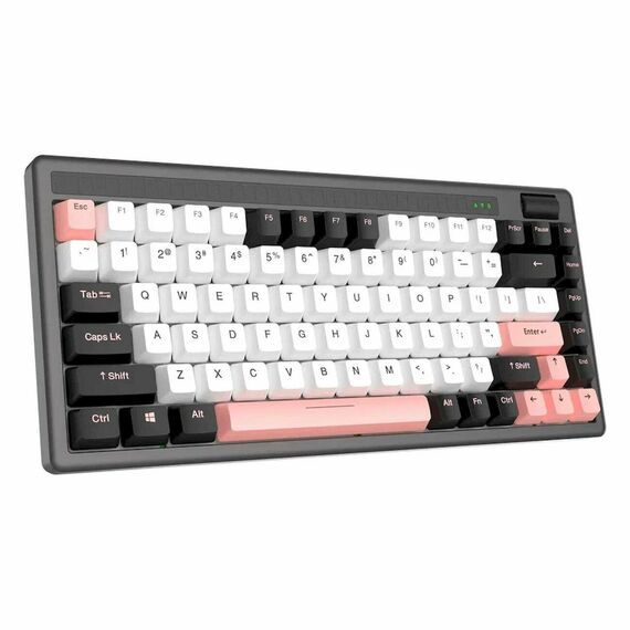 Минимум шума. Поддерживает быструю замену клавиш. Серия: A84 Pro. Модель: A84 Pro White-Black. Кабель USB: USB Type-C. Подсветка кнопок: RGB. Цвет русской раскладки: черный. Цвет английской раскладки: черный. Цвет игровых клавиш: белый/ розовый. Наличие клавиш Windows. Индикация Caps Lock. Программное обеспечение: на сайте производителя. Тип переключателей: Blue Sky V3. Большая клавиша Enter.