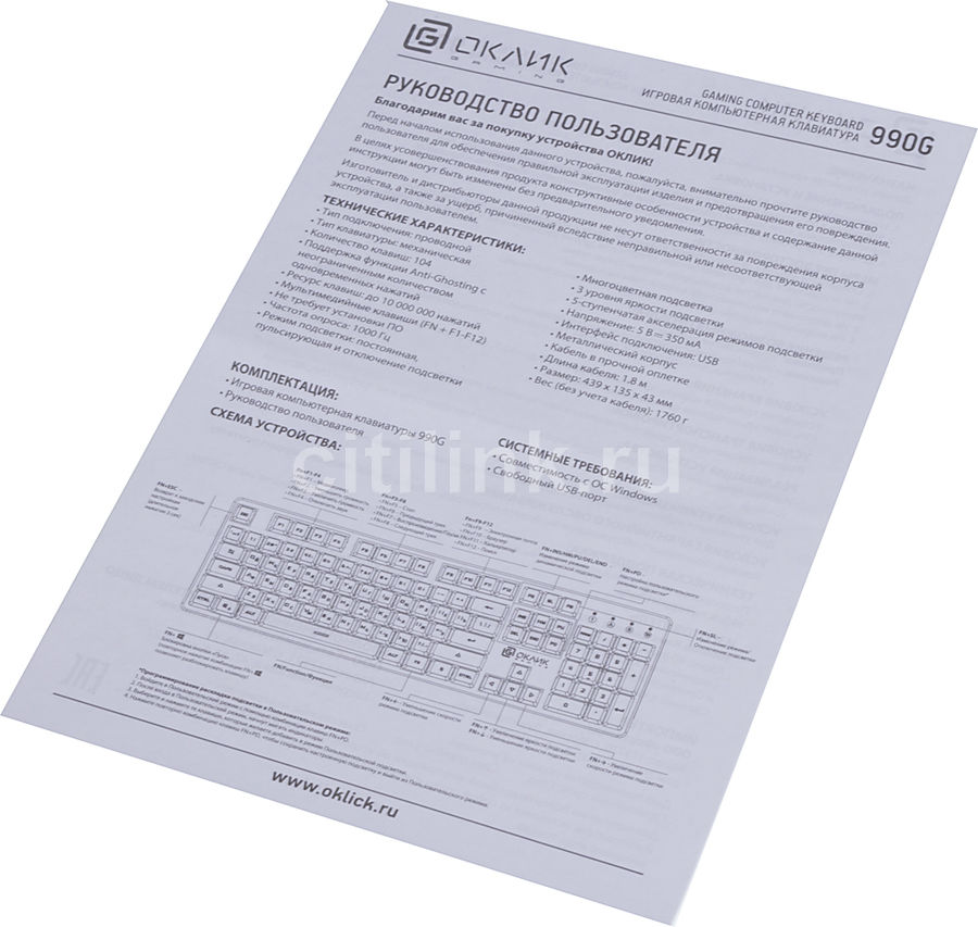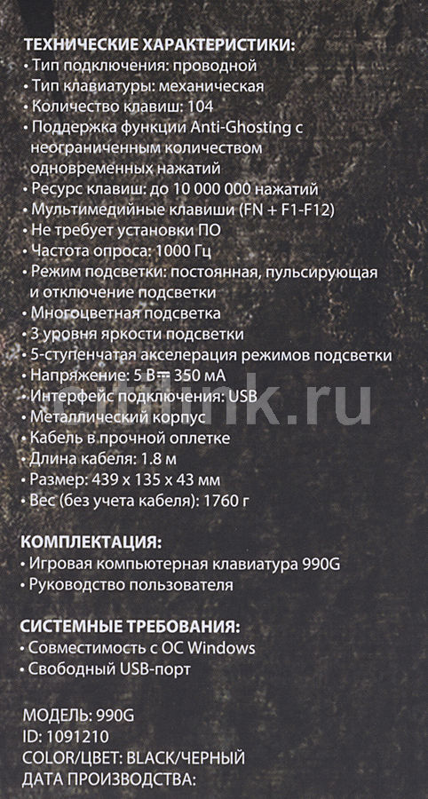 Размеры клавиатуры (ШхВхТ): 439 х 135 х 43 мм